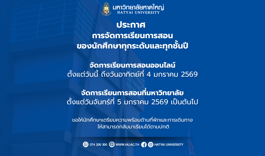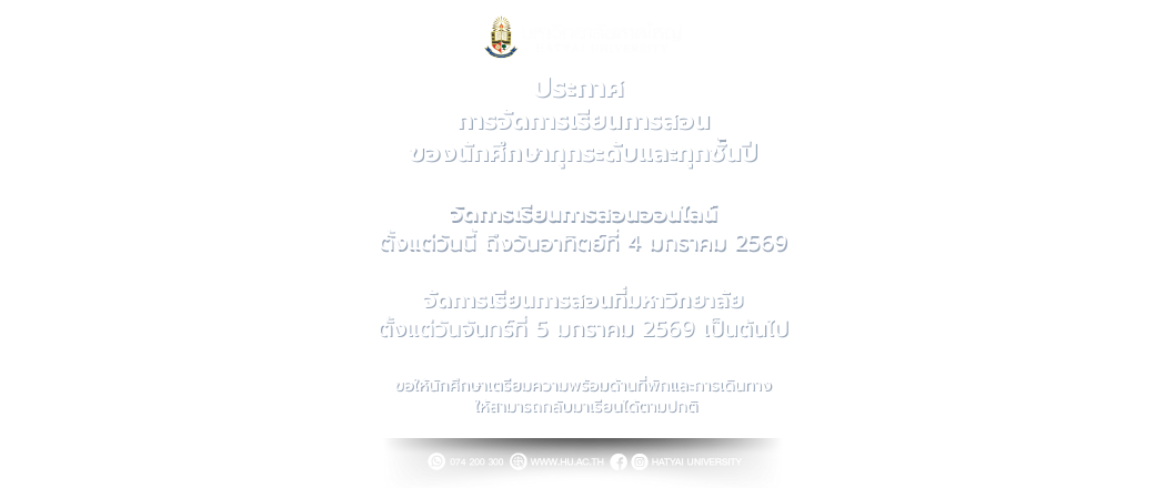 ประกาศมหาวิทยาลัยหาดใหญ่ เรื่อง การรับสมัครบุคคลเข้าศึกษา ระดับปริญญาตรี ประจำภาคการศึกษาที่ 2/2568