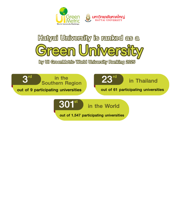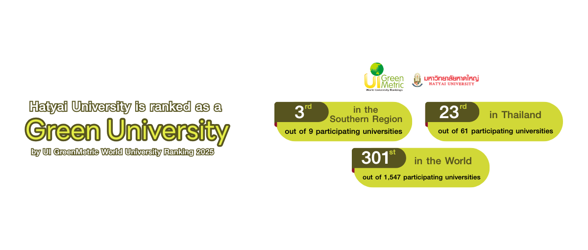 Ranking 2024 by being ranked 381st globally out of 1,477 institutions. Domestically, they were ranked 29th in Thailand out of 59 participating universities, and specifically recognized as the 4th best green university among the 9 universities in Thailand's Southern Hatyai University achieved a strong global standing in the UI GreenMetric World University Region.