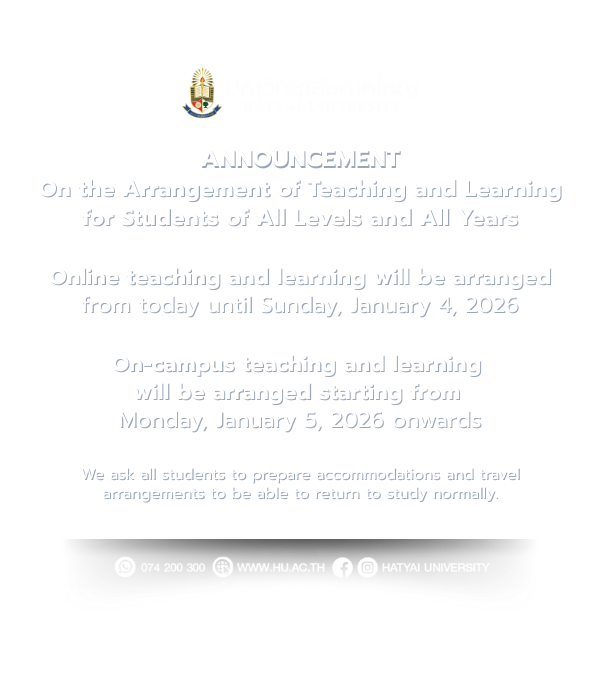 Hatyai University extends congratulations to Assistant Professor Dr. Witawat Didyasarin Sattayarak, President of Hatyai University, on being honored with the Outstanding Educational Administrator Award.