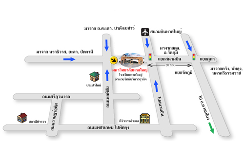 และเดินทางโดยรถเล็กโดยสาร (รถตุ๊ก ตุ๊ก) บอกพนักงานขับรถว่าเดินทางไปหน้าหอนาฬิกา จากนั้น ต่อรถอีกครั้งด้วยรถเล็กโดยสาร (รถตุ๊กตุ๊ก) ที่มีป้ายมหาวิทยาลัย ให้บอกคนขับว่าเดินทางไปมหาวิทยาลัยหาดใหญ่